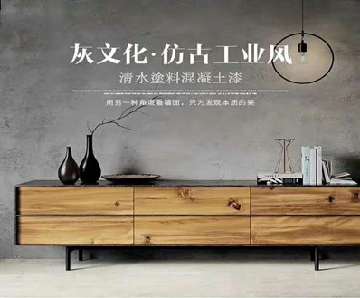 水泥漆,一款色彩簡單,裝飾風格多樣的干粉涂料,水泥漆主要在室內(nèi)裝飾中做工業(yè)風,復古風,做舊風格效果,復古時尚,大氣沉穩(wěn)。